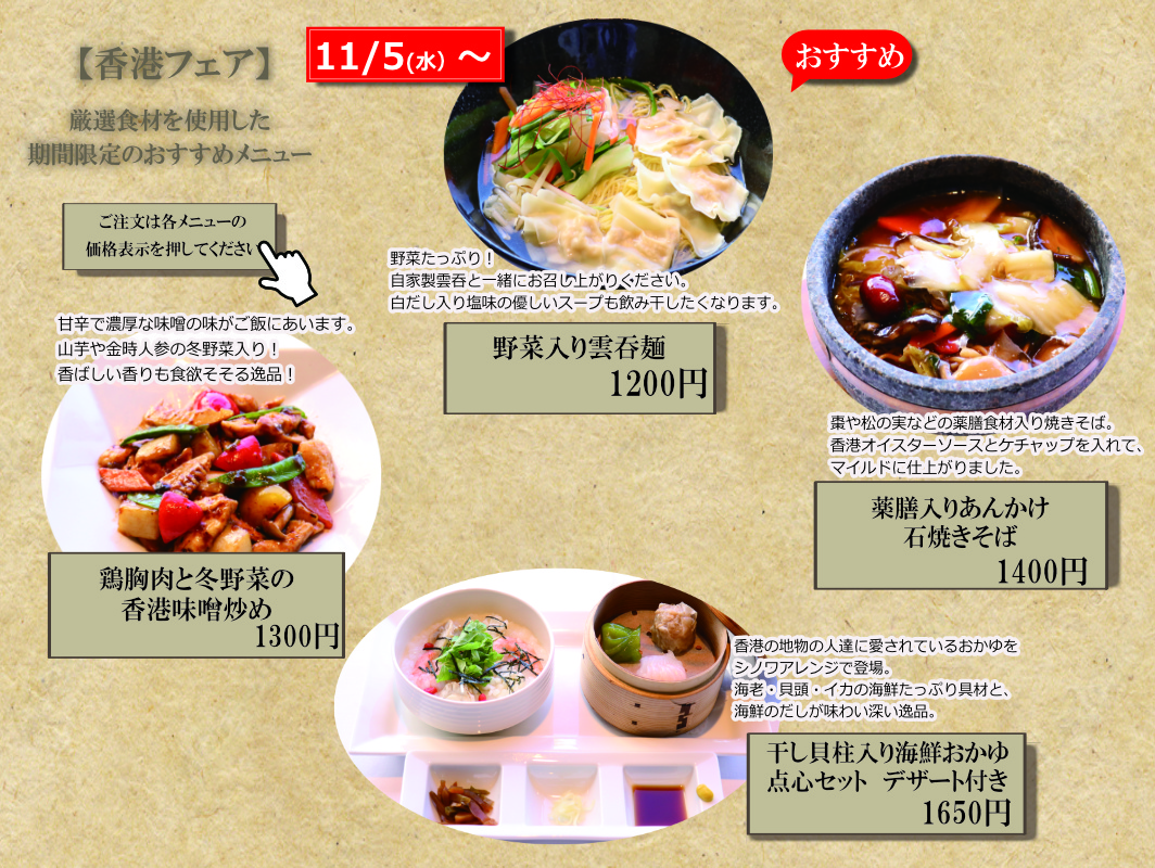 四季彩中華シノワ 少人数の会食にもおすすめ 飲み放題付き!秋の宴会プラン