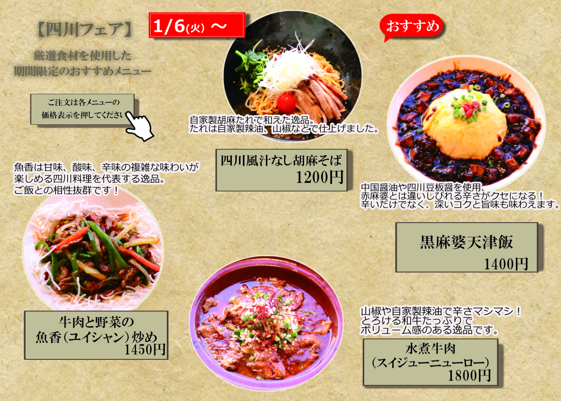 四季彩中華シノワ 四川フェア♪